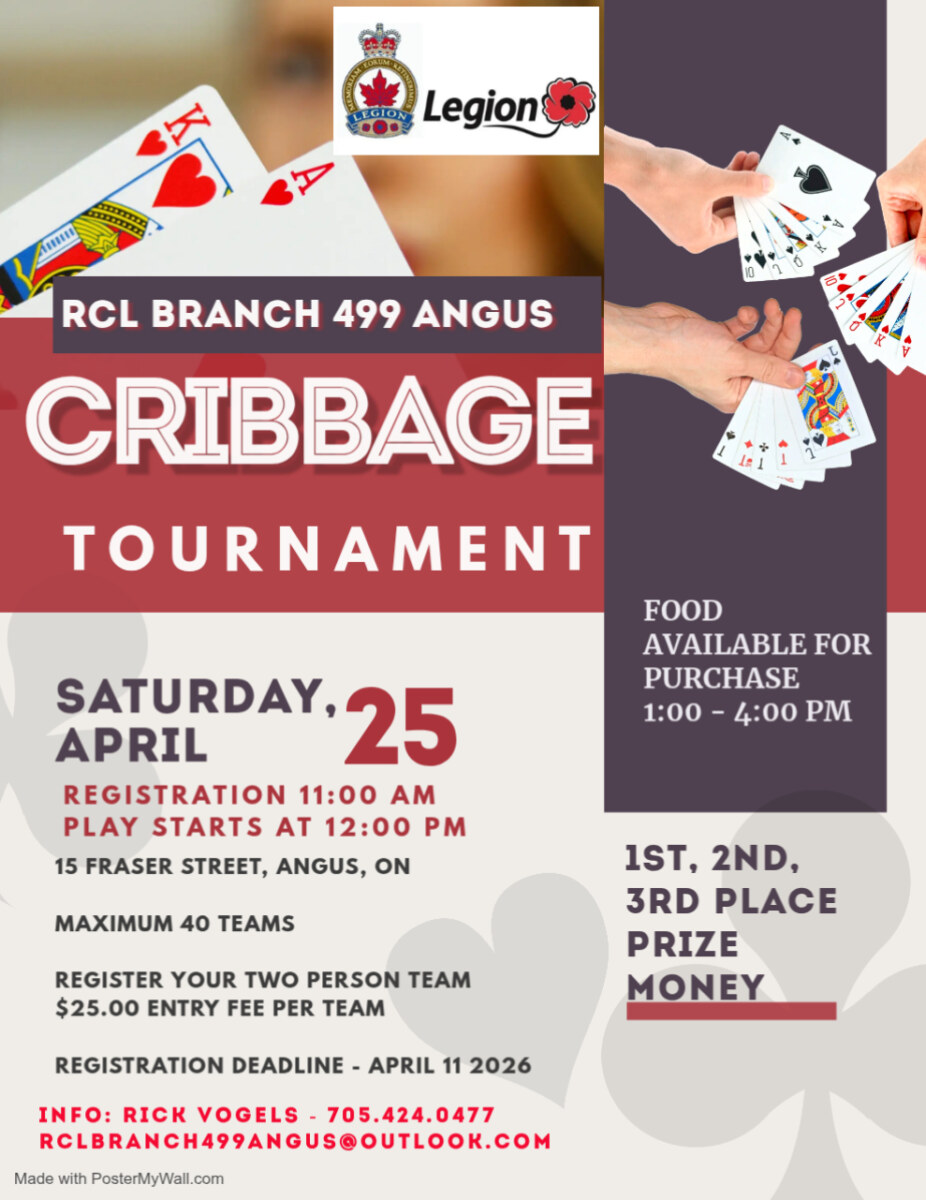 CRIBBAGE TOURNAMENT Saturday April 25th Register 11:00am-Start 12:00 2 person team